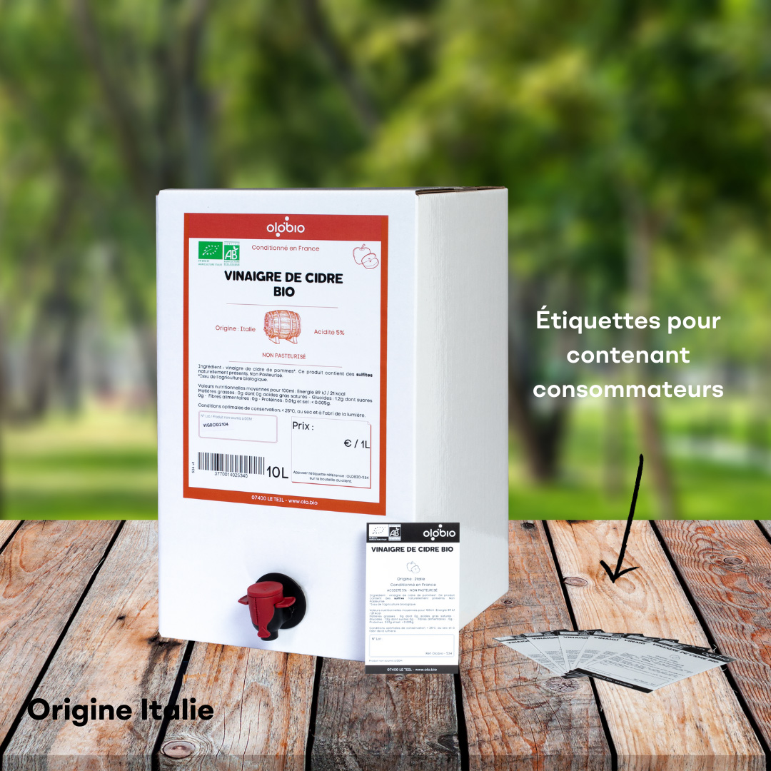 Fabrication : Le vinaigre de cidre résulte de la fermentation acétique du cidre de pommes qui s’opère par la transformation de l’alcool contenu dans le cidre de pommes en acide acétique en présence d’oxygène. Le vinaigre ainsi obtenu ne subit aucune pasteurisation. Le vinaigre est ensuite stocké dans des fûts de chêne pour être ensuite filtré avant d’être conditionné.